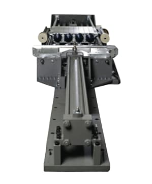 The 91HITS has one bullet and one test sled. The bullet is pneumatically fired into the test sled achieving impact velocity changes as high as 34 mph (15 m/s) and accelerations upwards of 500g. The test takes place within a 20 ft. end-to-end operating envelope, and the event occurs in less than a half-second. After the desired impact, the table and specimen are decelerated by a pneumatic braking system. Each of these violent events is controlled by Lansmont’s TTSII (TouchTest Shock version II) controls, including all sled and DUT shock pulse data.