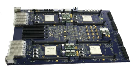 The BEE4-W is a commercial, stackable full-speed multi-FPGA based prototyping platform, integrated with DAC/ADC modules for mixed signal and digital communications designs. The FMC DAC/ADC Module is 4 sets of a single-width FMC mezzanine card providing both a 12-bit, 2.3-GSps multi-Nyquist digital-to-analog converter and a 12-Bit, 1-GSps analog-to-digital converter. BEE4-W DAC/ADCs are based on Maxim MAX19692 and Texas Instruments ADS5400 components.