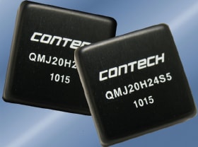 The QMJ Series of DC/DC converters from Contech (Concord, CA), a division of Calex, offers up to 20 Watts of fully regulated output power. The series offers a 4:1 input range with nominal input voltages of 24 VDC and 48 VDC. Single outputs offered are 3.3, 5, 12, and 15 VDC. Dual outputs are ±12 and ±15 VDC.