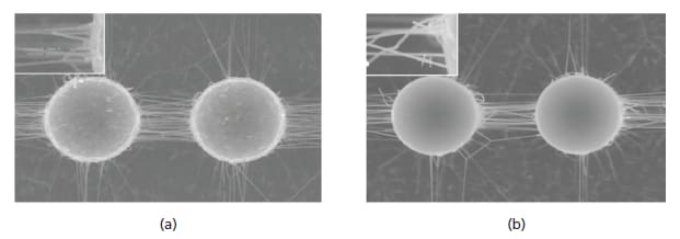 Unlike a thermal CVD system, a plasma- enhanced CVD (PECVD) system uses plasma to decompose a hydrocarbon gas such as C2H2, CH4, and C2H4. Thus, the synthesis of CNTs at low temperature is possible compared to the conventional thermal CVD method. But CNTs synthesized by PECVD have many defects and are short in size compared to those prepared by a conventional CVD system due to a chemical etching effect of the plasma ions. In order to fabricate SWNT-3DNs using PECVD, the plasma etching effect should be decreased or avoided by certain treatments, because one or two graphene sheets of CNTs are easily broken by accelerated ions during the PECVD process.