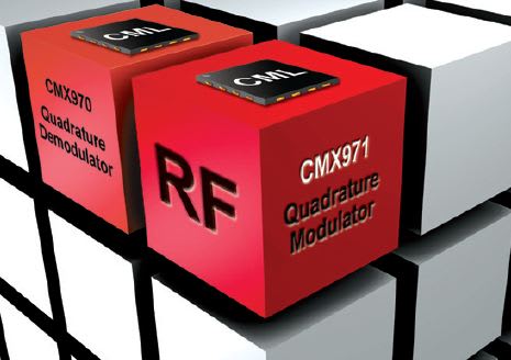 CML Microcircuits (Winston-Salem, NC) has released the CMX971 quadrature modulator integrated circuit, one of the company’s RF Building Blocks. The RF Building Block range is designed to provide high-performance ICs required for HF/VHF/UHF and professional radios, wireless data terminals, wireless microphones, and marine and avionics radio systems. The circuit features a wide operating frequency range, and low power consumption. The device can be programmed via a serial bus or works in direct control mode, which does not require connection to a serial controller. In both modes, programmable features include a local oscillator divider ratio (divide by 2 or 4), and linearity vs. noise optimization. The device can operate over the RF output range of 20 MHz – 1 GHz with a power supply voltage of 3.0V – 3.6V.