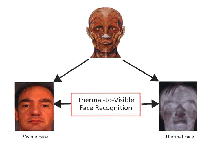 The natural emission of thermal IR from the human body makes it an ideal modality for nighttime tasks, but the large disparateness between the thermal IR and visible spectrums results in a wide modality gap that makes thermal-to-visible face recognition a significantly more challenging problem than the NIR-tovisible or SWIR-to-visible face recognition problems. The key to solving thermal- to-visible face recognition is the development of an algorithm or transform space that well-correlates the thermal and visible face signatures.