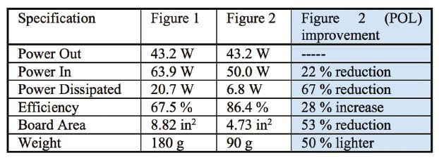 A much better approach for systems with multiple low-voltage load requirements is to use one isolated converter feeding several high-efficiency, non-isolated point of load (POL) converters as shown in Figure 2. The comparison of the systems in Figure 1 and Figure 2, given in the table, shows that the POL approach significantly improves many parameters over the traditional, multiple isolated converter approach.