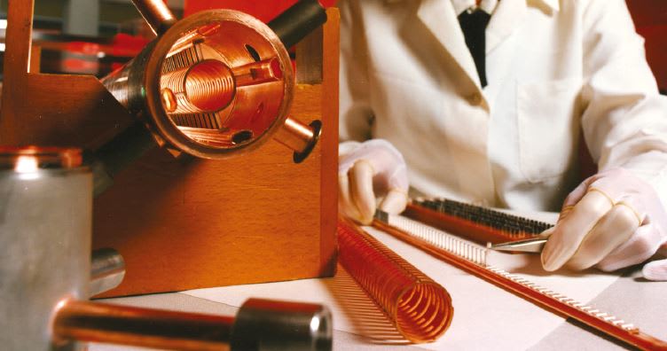 TMD Technologies (Middlesex, UK) produces a wide range of TWTs, a core component of many radar and missile seeker, electronic counter measure (ECM), and electronic warfare (EW) systems. TWTs are vacuum devices that amplify by producing an electron beam and coupling it with a microwave frequency electromagnetic signal. Synchronization is achieved by means of a “slow wave structure” that employs geometry such as a helix, ring bar, or ring loop to precisely delay the microwave signal by forcing it to meander back and forth.