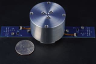 New Scale Technologies (Victor, NY) has announced a prototype rotary piezoelectric micro drive system. Unlike servo drives, the new rotary drive has no measurable jitter, holds position without power, and generates no magnetic fields. The 44 × 44 × 36 mm prototype operates at 350 degrees/second and has an acceleration of 3000 degrees/second2.