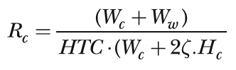 where Ww is the fin width, Wc is the channel width, ζ is the fin efficiency (function of HTC) and Hc is the channel height. Substituting the experimentally measured values, the equation was then solved for the HTC.