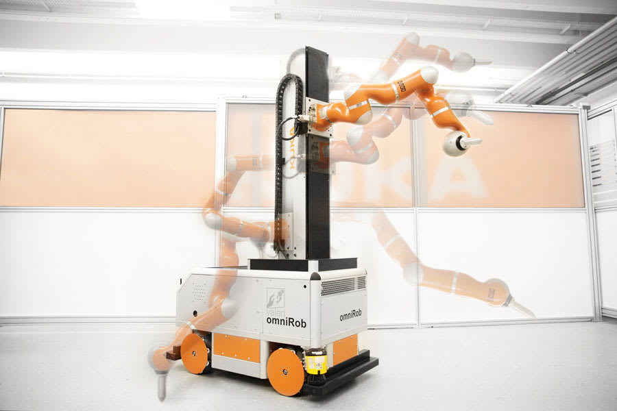A new mobile assistant is being developed to support technicians in the airplane manufacturing industry when applying sealant, measuring, and testing — without putting them at risk. In the EU project known as VALERI (Validation of Advanced, Collaborative Robotics for Industrial Applications), a European consortium is engineering a mobile robot that operates autonomously and moves independently through a production hall, side-by-side with the engineers and technicians. It is not intended to replace the technician, but instead relieve them of stressful and monotonous duties and take over inspection duties.