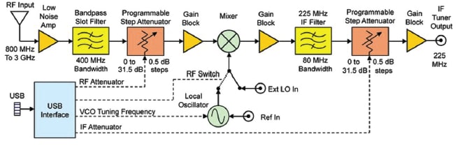 Because of the narrow tuning range, these types of RF tuners are often called “slot receivers.” They can be ideal for dedicated applications where limited frequency coverage, cost, size, and weight enable placement of the tuner at or near the antenna.