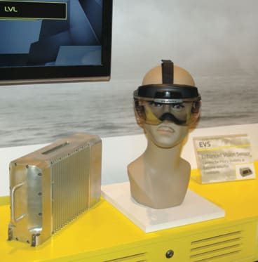 Isreal’s Elbit was also very active at the show, exhibiting a range of HMDs. A new lightweight HMD, Skylens, aimed at civil helicopter operators was shown, which is part of the Clearvision enhanced flight vision system family from the company and is a goggles-like display that is as easy to wear and compact as a pair of sunglasses.