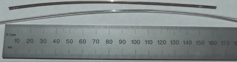 Though many methods exist to measure the rate of coating thickness growth on a flat surface, no procedure was found to explicitly measure the coating thickness of a cylinder. The simplest estimation was found by comparing the surface area of a flat rectangle and a cylinder. The resistivity of copper is 18 orders of magnitude smaller than the resistivity of the monofilament material. Therefore, practically all of the current flows through the copper coating and the area through which electric current passes can be defined as the cross-sectional area of the coating.