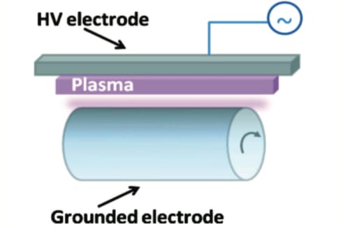 Prior to any other treatment, a cylindrical atmospheric pressure plasma system was used to pretreat the UHMWPE. To ensure that silica particles adhered to the UHMWPE film, a pretreatment using the cylindrical atmospheric plasma system was used. The pretreatment serves to create reactive chemical groups on the surface of the inert UHMWPE for subsequent processing. After the pretreatment of UHMWPE films using the cylindrical atmospheric plasma system, silane coupling chemistry was used to incorporate nanoparticles for a textured surface to increase the surface roughness of the material. A micropulsed atmospheric pressure plasma jet (APPJ) system was used to deposit a fluorocarbon coating on the nanotextured UHMWPE.