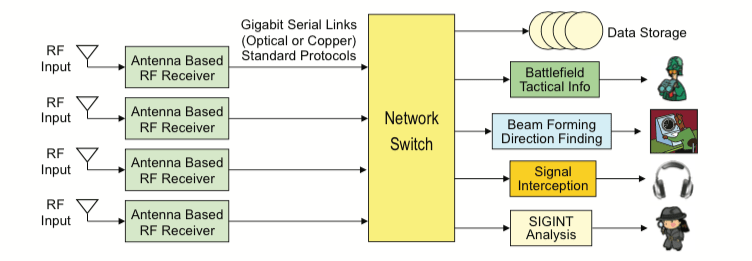 Digital receiver data can be easily distributed to multiple destinations using low-cost switches and readily archived on storage servers, as shown in Figure 3.