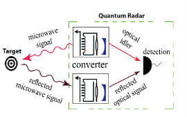 A conventional radar antenna emits a microwave to scan a region of space. Any target object would reflect the signal to the source, but objects of low reflectivity immersed in regions with high background noise are difficult to spot using classical radar systems. In contrast, quantum radars operate more effectively and exploit quantum entanglement to enhance their sensitivity to detect small signal reflections from very noisy regions.