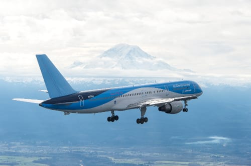 Two NASA experiments designed to help reduce fuel consumption and emissions will fly this spring on a specially outfitted Boeing 757 airplane called the ecoDemonstrator. One includes 31 small devices that will blow jets of air on the vertical tail, and the other involves non-stick coatings to help repel bugs from the leading edge of wings. Both are designed to improve the air flow over the surface and ultimately reduce drag.
