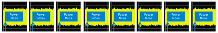 Another option is to use an external trigger to start the measurement. In this case, repeatability improves because the engineer is always measuring at the same time within the waveform, and there is no variation in modulation signal during the measurement. Unfortunately, repeatability comes at the expense of measurement time. Only one point in the waveform can be measured at any given time, and the delay to wait for an external trigger is, on average, half the total time of the waveform. Since the engineer isn’t actually making measurements during most of the waveform, this is wasted time.