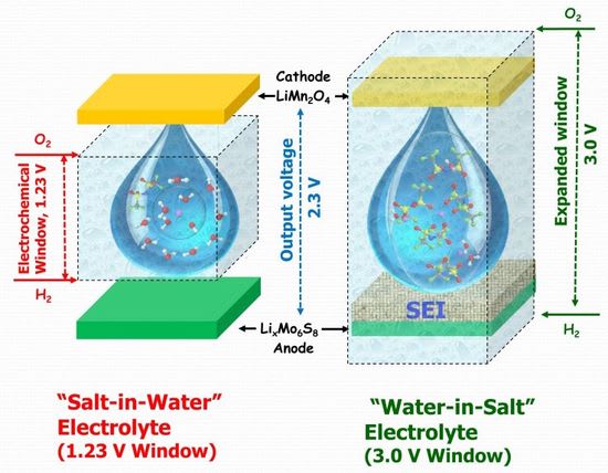 "Researchers in the Li-ion battery field have recently found that previously "useless" solvents could be made functional in Li-ion cells through the addition of high concentrations of salts. The work by Suo et al., extends this idea to the case of the solvent, water. By extending the operational voltage window to approximately 3 Volts, it is possible that a new generation of safer and possibly less expensive Li-ion cells could result,” said Dalhousie University (Nova Scotia) Professor Jeff Dahn, a leading battery researcher, who was not involved in the study. “Only further R&D efforts will be able to verify the practicality of this discovery, so prudence is needed in assessing the potential of this, or any basic research advance,” said Dahn, the NSERC-3M Canada Industrial Research Chair in Materials for Advanced Batteries.