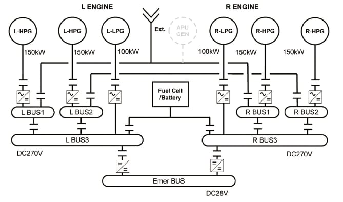 In terms of emergency and recovery operations, first, it should be determined whether at least one or more engines work correctly, or if both engines of a twin-engine aircraft are down in an emergency situation. If one or more engines work correctly, the capacity of the engine generators are thought to be designed to basically enable normal operation. In these cases, the following need to be satisfied from the requirements of each certification.