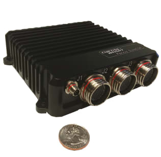 Another example of a small form factor component suitable for unmanned vehicles is the recently introduced Parvus DuraCOR 310 tactical mission computer based on a low-power, fourcore NXP i.MX6Quad ARM processor. This ultra-small system measures less than 40 cubic inches in volume, weighs less than 1.5 lbs and requires only 10 watts of power. It supports a high level of I/O flexibility through the use of dual PCIe-Mini Card I/O expansion slots. The mission computer features an industrial grade ARM-based Computeron-Module (COM) tightly integrated with a Flash SSD and system carrier board, which provides a full complement of standard vetronics I/O interfaces including CANbus, USB, Ethernet, serial, DIO, video, and audio. The system’s combination of small size, low-power multi-core processing, and flexible I/O represents the key design targets that system designers for unmanned systems are seeking to be able to add new Command, Control, Communications, Computers, Intelligence, Surveillance and Reconnaissance (C4ISR) capabilities to their platforms.