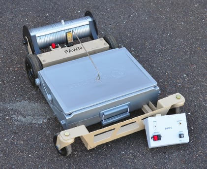 The use of Vehicle-Borne Improvised Explosive Devices (VBIED) has increased each year. Current anti-VBIED technology is not only expensive, but requires months or years of training by Explosive Ordinance Disposal (EOD) technicians to operate the equipment. The process of unloading the EOD robot, attaching the detonation wire to the robot, attaching the water charge to the EOD robot, driving the water charge to the VBIED, placing the charge under the vehicle, and then retrieving the EOD robot is a time consuming event. With a typical EOD robot costing $100k - $200k, there is a large financial risk to the EOD team if the robot is damaged or destroyed in the process. WM Robots PAWN was developed to offer the EOD technicians another option in reducing the time needed to neutralize the threat and cost of the operation.