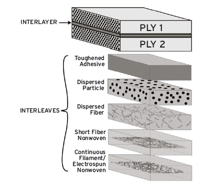 The interleaf material is fabricated from CVD vertically grown CNT arrays by the shear pressing method. The shear pressing is realized here on a specialty automated device which allows one to delicately control the CNT array alignment, CNT volume fraction and the shear pressed sheet (SPS) thickness. The produced thin dry SPS can be strategically placed within some region between composite plies and, after conventional laminate fabrication it becomes its integral part. Under this scenario, the SPS can be partly or fully impregnated during the cure process with the resin which is already contained in the prepreg plies. An alternative manufacturing approach could be to first impregnate the SPS preform with some other, desirably lower viscosity, resin and partially cure it, then embed the “SPS prepreg” between the plies of composite and complete the manufacturing cycle.
