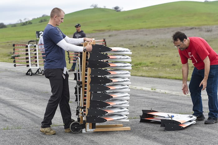 Each team launched ten small propeller-driven Zephyr aircraft, though two of the aircraft experienced technical issues at launch and were unable to compete, resulting in a 10 versus 8 competition. Although the UAVs were physically identical, their computers used different autonomy logic, collaboration approaches, and communications software developed by the two institutions. GPS tracking allowed each aircraft to know the location of the others for this demonstration. In the future, this information will be provided by on-board cameras, radars, and other sensors and payloads. Each aircraft used a single-board mission computer, and for this demonstration, an open-source autopilot maintained flight control. The aircraft also had Wi-Fi systems that allowed them to communicate with other aircraft and with a ground station.