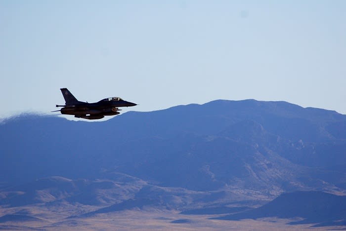 An F-16C from Nellis Air Force Base near Las Vegas, chosen to drop the test unit representing a B61-12, began with a dry run over one of the lake beds. But during his next pass for the planned release, he had to roar off after a small group of wild horses ambled onto the lake bed. A video feed from a remote camera in the area showed the horses trotting away to safety, herded by wranglers: security officers in a white pickup, its headlights and rack lights pulsing. “That’s a first for us,” said test director Joe Simile of Sandia. “We’ve never had to chase horses away from the target.”