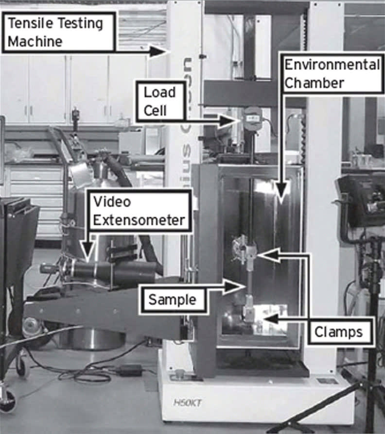 Stress relaxation tests of propellant are currently performed on standard tensile testing machines, and the specimens are subjected to uniaxial stress conditions. Because the propellant is very compliant, the applied strain has to be large; otherwise, the loads would be too small to measure accurately, unless an atypical load cell were used (i.e., an atypical load cell that is not very compatible with commercial tensile testing hardware). Typically, the applied strains will be in the 1–10% range. At these strains, damage is likely occurring due to dewetting of the particulate matter. Therefore, specimens are only used at a single temperature. Because of these considerations, generating a typical master curve requires 18–30 specimens (assuming three to five specimens per temperature and six temperatures).