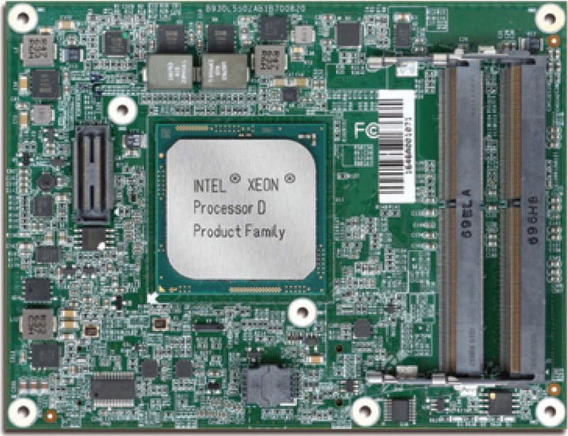 American Portwell Technology, Inc. (Fremont, CA) recently released the PCOM-B700G, a COM Express 3.0 Type 7 Basic Module (125 mm × 95 mm) based on the Intel Xeon processor D-1500 product family (code-named Broadwell-DE). PCOM-B700G is designed with three DDR4 SO-DIMM slots, up to 48 GB dual-channel DDR at 1867/2133/2400 MHz ECC (depending on the SoC SKU), up to 8x PCIe 2.0 x1, 1x PCIe 3.0 x4, 1x PCIe 3.0 x16, 2x SATA 6GB/s and 4x USB 3.0/2.0. The PCOMB700G module also comes with an option for wide operating temperature support with the range of -40°C to +85°C (depending on the SoC SKU).