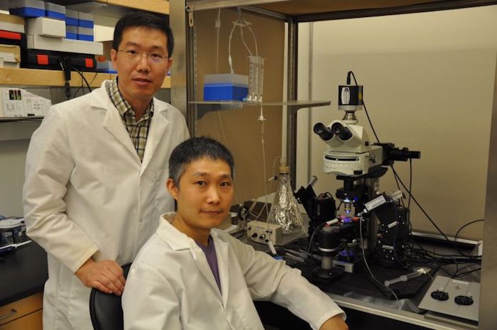 “In the brain, neurons receiving the high- and low-pitch tone signals are intermingled,” said Cho, a member of the Center for Glial-Neuronal Interactions in the UC Riverside School of Medicine. “We were able, however, to experimentally stimulate just those neurons that responded to the high-pitch sound. Using low-frequency stimulations with light, we were able to erase the fear memory by artificially weakening the connections conveying the signals of the sensory cue – a high-pitch tone in our experiments – that are associated with the aversive event, namely, the foot-shock.”
