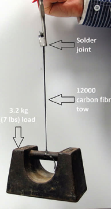 Goodfellow (Coraopolis, PA) has announced the availability of C-Solder, the trade name for a group of new tin-based, flux-free soldering alloy that enables the joining of carbon materials. The resulting bond is both mechanically strong and electrically conductive. With C-Solder you can join carbon materials including carbon fibers or carbon nanotube fibers in carbon-carbon arrangements; carbon to metals (e.g., copper aluminum, titanium, stainless steel), ceramics and glass materials; and aluminum to aluminum, all without using flux.
