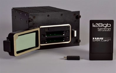 The Model 9740 Complete Data Storage Solution from the Memory Division of Kaman Precision Products, Inc. (Middletown, CT) includes an electronics module, a ground station adapter with encryption key enabled, and encryption key programmer. The Model 9740 features the new Kaman SATA card, with a unique ruggedized design, small form factor, high memory density, and on-card encryption providing data-at-rest functionality. The Kaman SATA card is hermetically sealed to enable it to withstand even the most severe military environments.