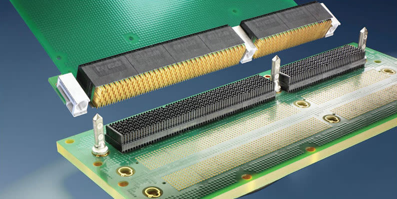High-speed board level connectors like the TE Connectivity MULTIGIG RT2-R, designed to meet the VITA 46 standard, that utilize small printed circuit board wafers, are modular in design and can handle signal, power and high speed signaling with speeds of up to 12 gigabits of data per second. They interconnect via an industry standard interface and are electrically engaged via a wiping action on the surface of each wafer. This type of connector design could also have some important benefits in a new, low profile soldier connector. The high-speed signaling capability, along with the small size and weight, could form the basis for a future soldier connector that would be a significant deviation from a traditional pin and socket connector.