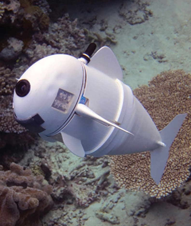 A team from MIT's Computer Science and Artificial Intelligence Laboratory (CSAIL) unveiled “SoFi,” a soft robotic fish that can independently swim alongside real fish in the ocean. During test dives in the Rainbow Reef in Fiji, SoFi swam at depths of more than 50 feet for up to 40 minutes, nimbly handling currents and taking high-resolution photos and videos using a fisheye lens.