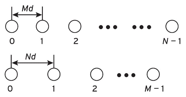 The second operation exploits two displaced subarrays, and the resulting co-prime array structure allows the minimum inter-element spacing to be much larger than the typical half-wavelength requirement, making them useful in applications where a small interelement spacing is infeasible.
