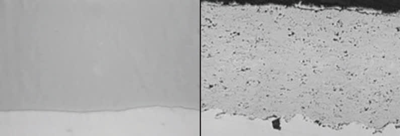 Other traditionally-used coatings such as HCP, sprayed coatings and electroplating have micro-pores and microcracks that widen when the substrate deforms under load, allowing media to attack the substrate.