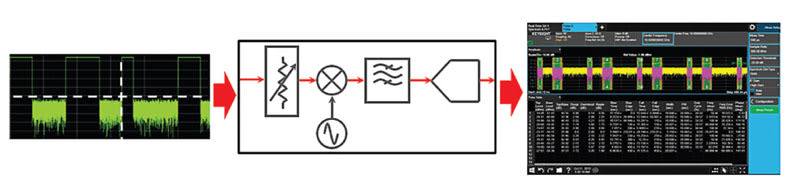 In understanding the pulse measurement process, the first step may involve additional complexity: triggering may actually be derived from some later measurement/ analysis processes such as an RTSA frequency mask trigger (FMT). The steps in the previous process may be performed individually by separate devices, or multiple steps — including the entire pulse measurement — may be performed by a single analyzer (Figure 3).