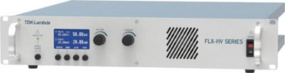 TDK Corporation (Neptune, NJ) has introduced the FLX-HV Series of high voltage programmable AC to DC power supplies with standard features including USB/LAN digital interfaces and active power factor correction. The FLX-HV Series covers output voltages of 10,000, 30,000 and 50,000 volts, at power levels of 200, 500 and 1,000 watts. The unit is housed in a compact, lightweight 2U rack-mount package that incorporates front to back cooling with a variable speed fan for quiet operation.