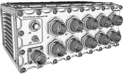 The CR-6200 Series router implementation is based on a separate router board with an Intel Atom processor and can either be equipped with the OnTime Networks router package providing routing speeds of up to 800 Mbps or with the Cisco® 5921 Embedded Services Router (ESR) Advanced Enterprise router package, providing up to 500 Mbps of routing speed. Its modular rugged design, enclosed in a completely sealed housing against dust and water ingress (IP68), requires no active cooling and provides MIL-DTL-38999 connectors.
