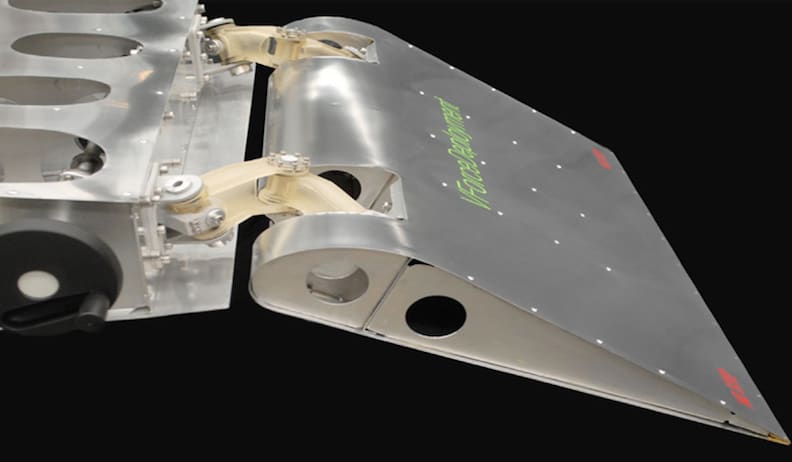 The VForce is a major evolutionary step in fixed-wing aircraft development that provides a lighter less complex, high lift device deployment mechanism that does not require under-wing fairings and reduces fuselage shock body size — all combining to reduce parasitic drag. Cruise flight drag is reduced and less fuel is carried and consumed, allowing for a higher pay-load, increased range, and reduction in greenhouse gas emissions. It also allows for the morphing of rotorcraft blades with greater efficiency.