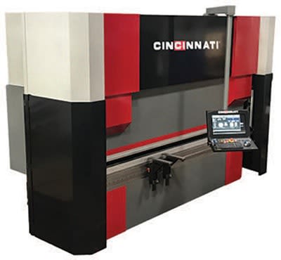 Cincinnati Incorporated (CI) (Harrison, OH), a U.S.-based, build-to-order machine tool manufacturer, will introduce a 150-ton version of a new hybrid model. New features found on this press brake are an ergonomic sliding overhead control arm, unique built in storage cabinets, LED lighting, protective cylinder covers and side and rear guards. Cl's CIberlink generates daily log files of machine production with the ability to monitor machine status in real time on a desktop dashboard.