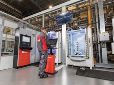 Fastems’ automation equipment includes a variety of extendable and flexible manufacturing systems, robot applications, and control software; stacker cranes; conveyors; loading/unloading stations; pallet magazines and assembly organizers; and raw material stations to name a few. These automation systems have open interfaces and can be incorporated with virtually any modern CNC machine tool and auxiliary equipment brands. Typical applications range from joining two machine tools together with Flexible Palletized Container (FPC) to highly sophisticated, factory-wide flexible manufacturing systems.