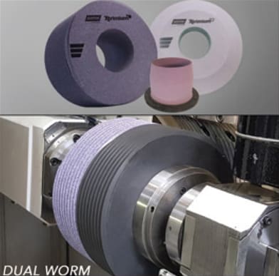 Norton I Saint-Gobain Abrasives, one of the world's largest abrasives manufacturers, announced the introduction of its new Norton Xtrimium™ range of gear solutions designed for high performance gear grinding in extreme, tight tolerance environments. Highlighting the new range is an innovative dual-worm wheel design that enables two operations in one grinding wheel. Norton Xtrimium Dual-Worm Grinding Wheels feature a unique design with a high-performance vitrified bond section for grinding and a fine-grit resin section for polishing the gear teeth, enabling one wheel to perform what traditionally required two wheels. In addition, improved surface finishes of Rz = 1.0 mm and Rpk = 0.05 mm, and reduced harmonics (noise) are realized.