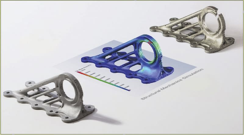 Airbus is using AM widely; the 3D-printed titanium cabin brackets used throughout the A380 weigh 30 percent less than the traditionally milled pieces used in previous aircraft. The structural mechanics simulation module in the Volume Graphics (Heidelberg, Germany) software the company employed was verified on this part (Figure 1). As lighter, yet more costly, superalloys are increasingly being employed for weight reduction in aerospace, CT-based evaluation of the performance of these materials is becoming a valuable part of the aircraft manufacturer's toolkit.