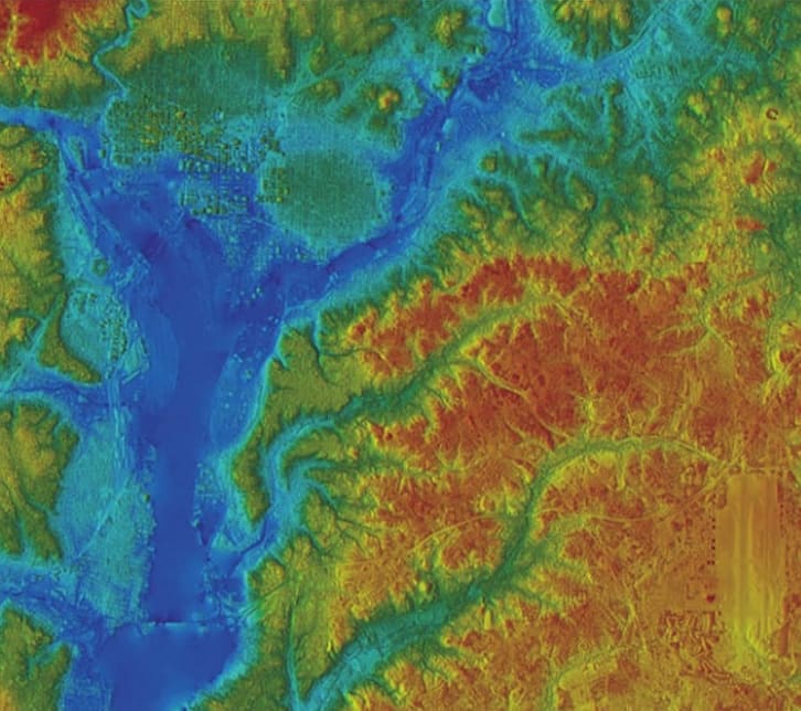 Interferometric Synthetic Aperture Radar (IFSAR) utilizes two or more SAR images collected from slightly different grazing angles to yield a topographic map of the scene. The SAR images are coherently compared or “interfered” to ascertain the phase differences between image pixels, creating an interferogram. This allows target scene topographic height information to be calculated. Sandia has fielded both two-pass and single-pass, multi-phase center antenna, real-time IFSAR systems.