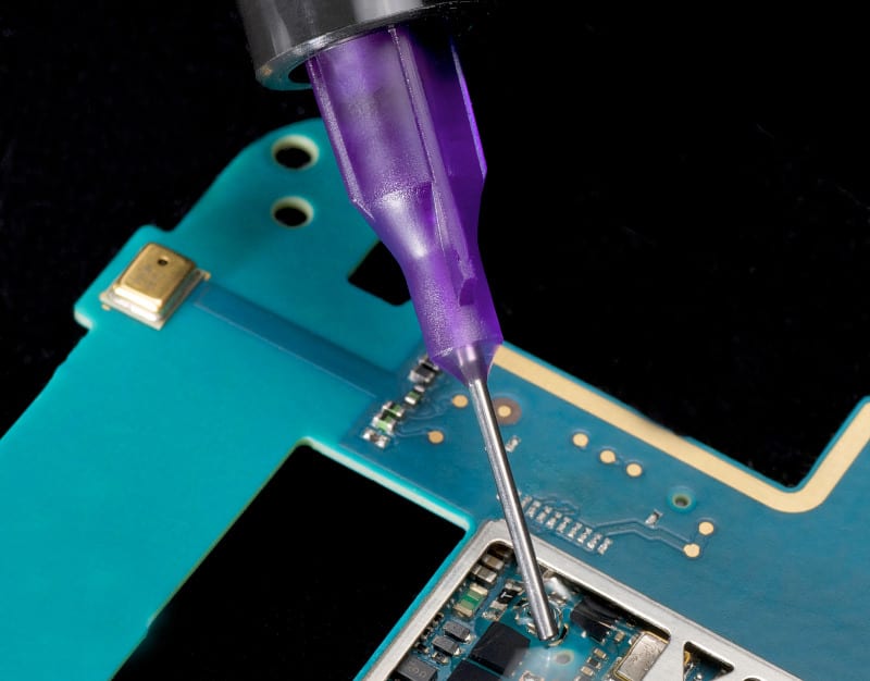 John P Kummer (Marlborough, UK) launched new UV-curable epoxies for dam and fill processes in the UK aerospace industries. The “dam & fill” process with two materials is mainly used in cases where a component needs to be protected with either an opticallytransparent or opaque encapsulant, or if a conventional glob-top material is too viscous to flow around and underneath fine wires. Optically transparent encapsulants usually have a low viscosity. A dam is therefore applied around the component first to prevent the potting material from flowing over the substrate.