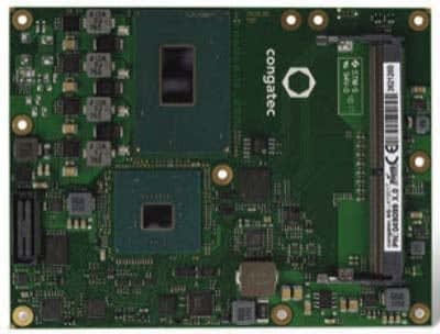 The spearhead in terms of computing power is the 45 watt 6-core module with 2.8 GHz Intel Xeon E-2276ME processor. Particularly noteworthy are the two 6-core congatec modules with a TDP of 25 watts offered on Intel Xeon E-2276ML and Intel Core i7-9850HL processors. They enable developers to create completely passively cooled embedded edge computing systems that can run up to 12 standalone virtual machines in parallel thanks to hyperthreading. This allows operation even in fully sealed systems, under the harshest environmental conditions and with the highest IP protection. The same applies to the two quad-core modules with Intel Xeon E-2254ML or Intel Core i3-9100HL processor as well as the Intel Celeron G4932E processor-based module, all featuring a – partly configurable – TDP of 25 watts.