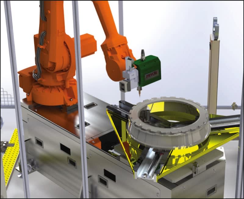 Today, the robotic control typically takes place on the marking head itself and Pryor's system, for example, works with parts up to 1.2-meters in diameter. Even larger components could be handled if required. For the aero industry, the robots are usually fitted with dot peen marking heads, but lasers or scribes may also be used for component marking if appropriate.