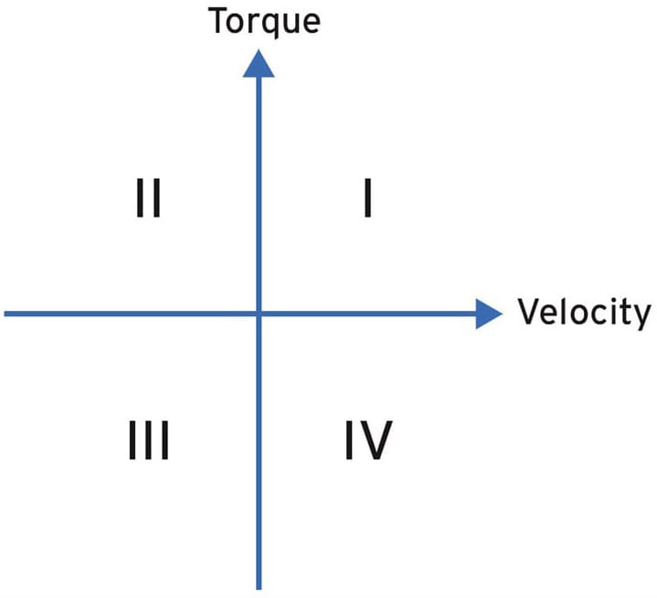 Servo control systems require accurate control of motion parameters such as acceleration, velocity, and position. This requires a controller that can apply current (torque) to accelerate a motor in a given direction, as well as provide an opposing current to decelerate it. When this application of aiding and opposing torque can be carried out in both directions, it is referred to as four quadrant motor control (Figure 1).