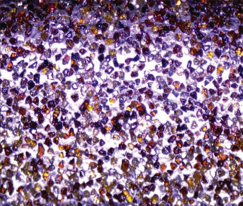 Features: Vitrified bonds are typically used for high-precision processes. They offer the longest life among all of the bond types. This bond will also maintain its cutting ability as required by wheel speed and due to the nature of the vitrified matrix which adheres to the CBN by a chemical method (chemical bond). This helps in retaining the grain, allows for longer life and also permits it to be dressed to re-expose new sharp edges of the CBN grain. The CBN won’t be released until the bond bridge breaks or until there is very little grain retained by the bond and it eventually fails. Vitrified bonds are also good for high temperature applications.