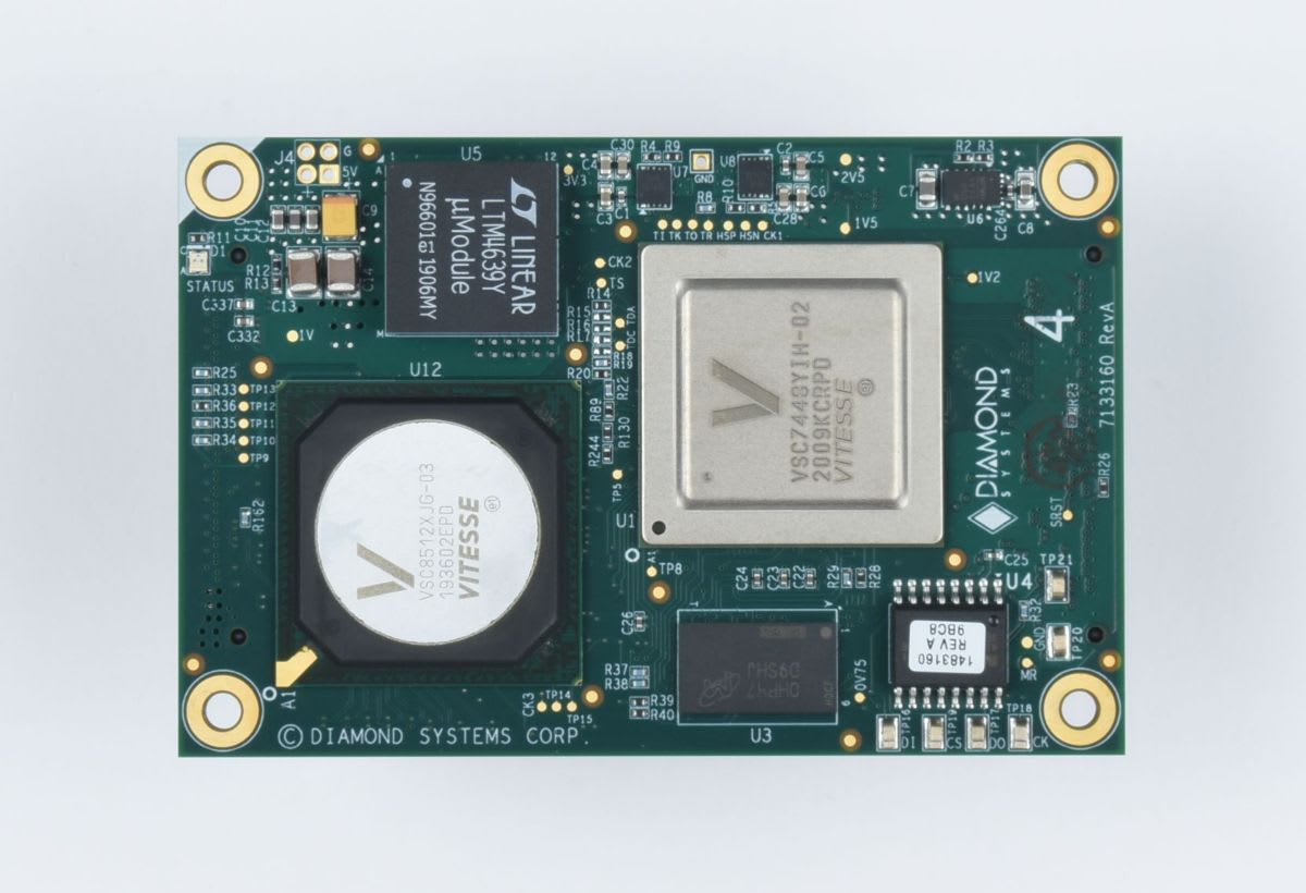 Diamond Systems (Sunnyvale, CA) has unveiled the latest model in its popular line of compact gigabit Ethernet switch modules. The EPSM-10GX4 managed switch offers 24 10/100/1000Mbps copper ports + 4 10Gbps SFI ports and Layer 2+ switching and Layer 3 routing/switching software in the ultra-compact size of 2.2” × 3.3” (55 mm × 84 mm). The module is intended to be used on a carrier board, such as Diamond's EPS-24G4X, to implement a complete Ethernet switching solution. EPSM-10GX4 is designed to meet the challenges of vehicle environments with its 50% thicker PCB, - 40/+85°C operating temperature range, and MIL-STD-202G shock/vibration resistance.